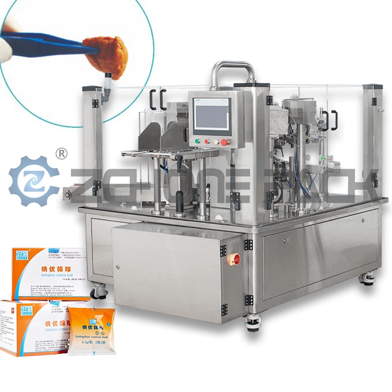 Povidon-Iod-Wattebausch-Verpackungsmaschine Feststoff-Plus-Flüssigkeit-Dualmaterial-Multifunktionsverpackungsmaschine