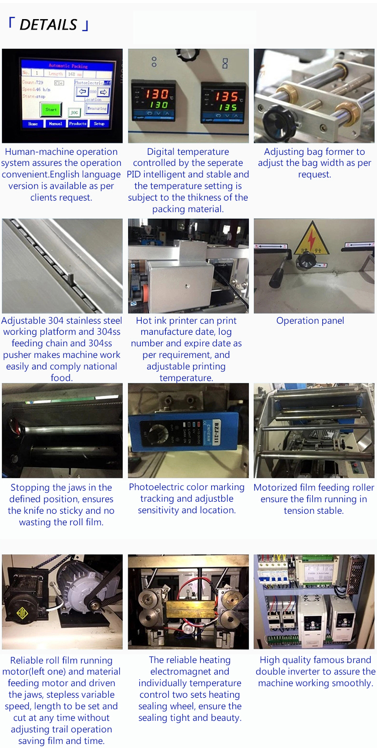 Hohe Automatisierung: Automatische Fütterung, Beutelherstellung, Füllung, Abdichtung, Schneiden und Ausgabe werden alle durchgeführt, was sie für die Großproduktion geeignet macht.